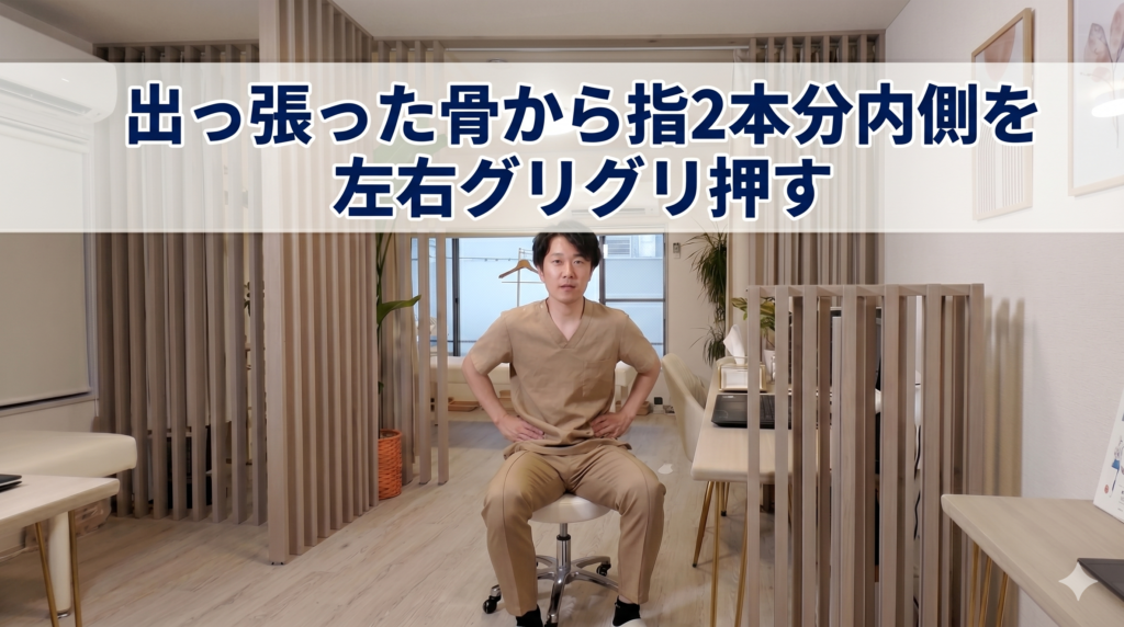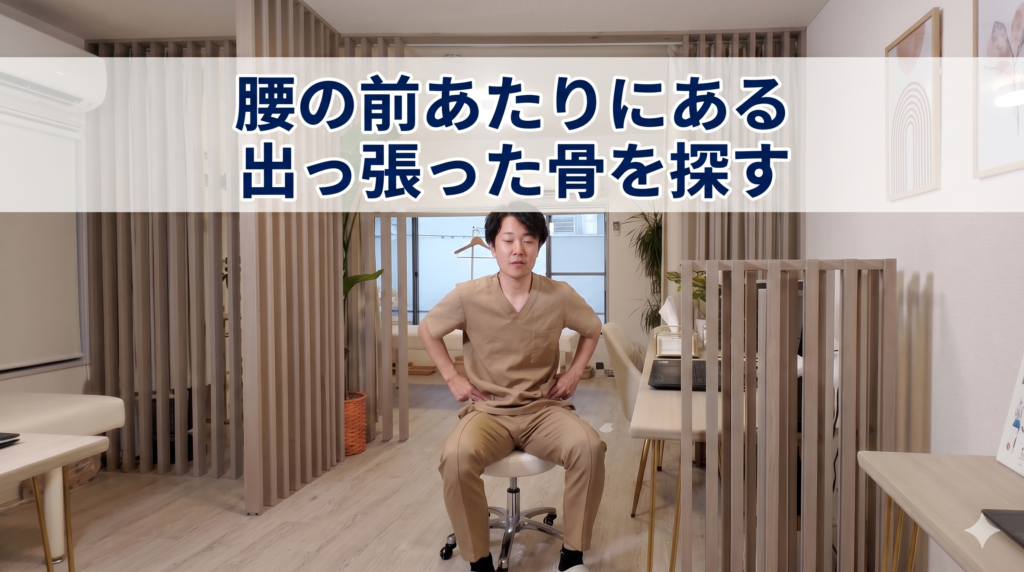 次に、腰の前あたりにある出っ張った骨を探してみてください。